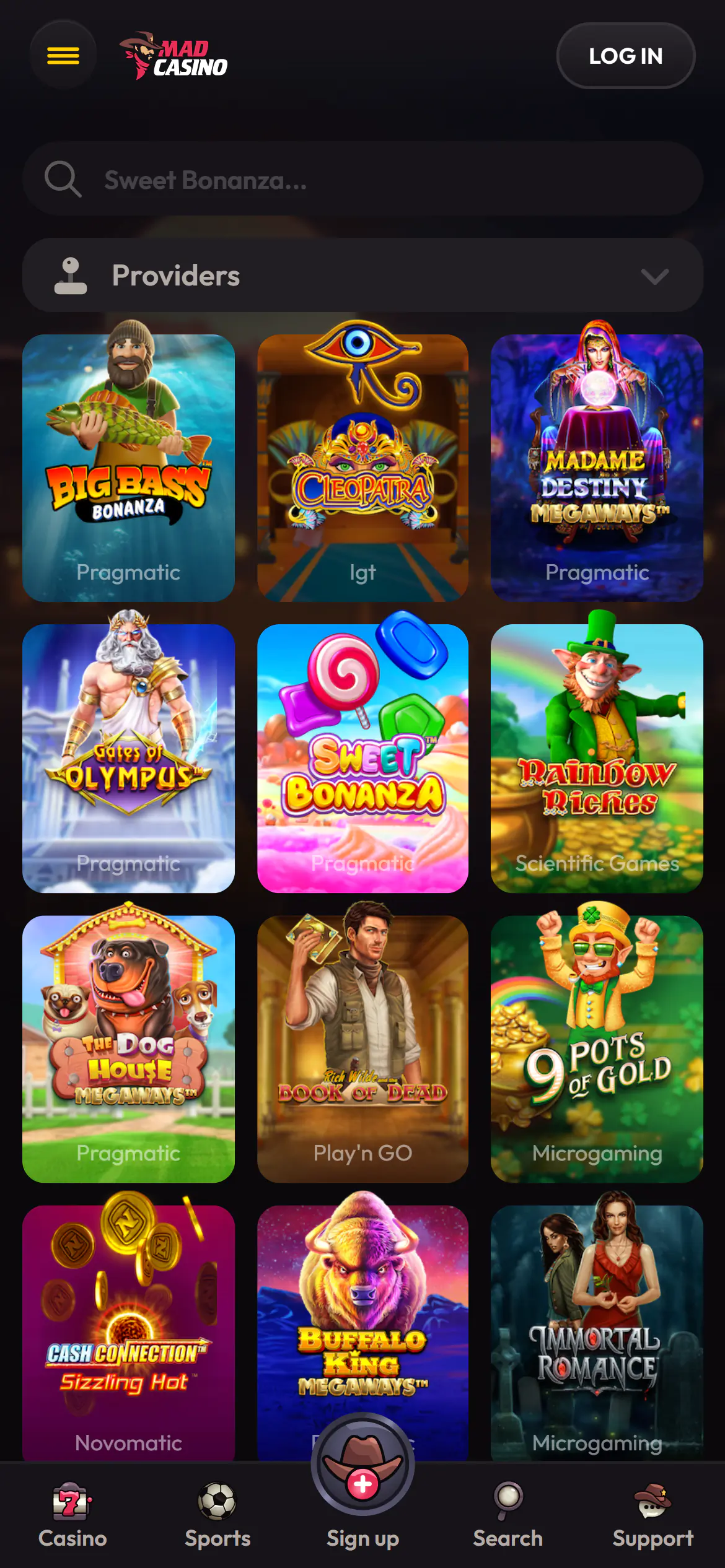 Our full range of madcasino slots is available on mobile, offering the same depth, performance, and fairness you would expect from the desktop site. We have optimised each title for touch control, portrait and landscape modes, and small-screen readability, ensuring that spinning the reels on your phone feels natural and effortless. From classic casino slot games to advanced video slots, every release loads quickly and retains all original features. Players can enjoy smooth animations, clear sound, and full access to bonus rounds, free spins, and multipliers. Popular games such as Book of Dead, Sweet Bonanza, Big Bass Bonanza, and Gates of Olympus perform flawlessly on smartphones and tablets, maintaining high visual quality without lag. Our mobile casino app layout supports intuitive swipe navigation, allowing you to scroll through categories, change stakes, or switch between titles with a tap. The interface automatically adapts to portrait mode, which makes it comfortable to play using one hand. For those who enjoy table entertainment, live casino and card games like blackjack, baccarat, and roulette are also available and fully functional in mobile version. Every session on our mad casino mobile app maintains the same fairness standards as desktop play. All outcomes are determined by Random Number Generators (RNGs), and each title is verified by trusted developers. Whether you are spinning a jackpot slot, joining a live casino table, or exploring themed adventures, you can be confident that gameplay remains transparent and secure. With hundreds of mobile casino games at your fingertips, you can explore and play mobile casino favourites wherever you go. Our responsive design ensures that buttons, menus, and balance information remain accessible even on smaller screens. It’s the same complete experience, simply optimised for life on the move.